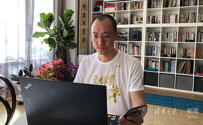为了准备线上“首秀”,他还特意穿上了“无体育 不清华”的T恤,很多同学在屏幕前看到熟悉的服装都纷纷大呼:“好想回到校园里‘撸铁’!”