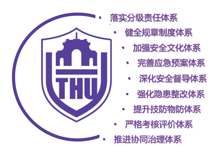 两年多来,学校逐步健全适合发展需求的安全保障体系,完善校园综合治理委员会会议制度和相关部门安全管理职责,充分发挥综治委议事决策作用,逐步推进校园安全管理工作,由规章制度体系、分级责任体系、安全文化体系、应急预案体系、安全督导体系、隐患整改体系、物防技防体系、考核评价体系等八大体系共同构建的“大安全”工作格局基本成型,并有效发挥了作用:一是将安全管理责任列入学校各部门的通用职责,做到“一岗双责”;二是修订《安全工作责任书》,深化横向到边、纵向到底的责任体系;三是建立多部门间的沟通协调机制,推进彩钢板、地下空间等安全管理和隐患排查整治;四是将安全管理责任融入到物业公司选聘、合同管理等具体要求中;五是按照学校资源统筹管理大思路,推进校园停车资源统筹;六是科学合理考核评估各单位的安全绩效,明确奖惩,强化责任追究,提供安全稳定工作负面清单,每两年组织校园综合治理先进评选,根据学校安全规章制度对发生事故和问题的单位严肃追责,对安全工作不合格单位提出评估等级降档的建议或“一票否决”。